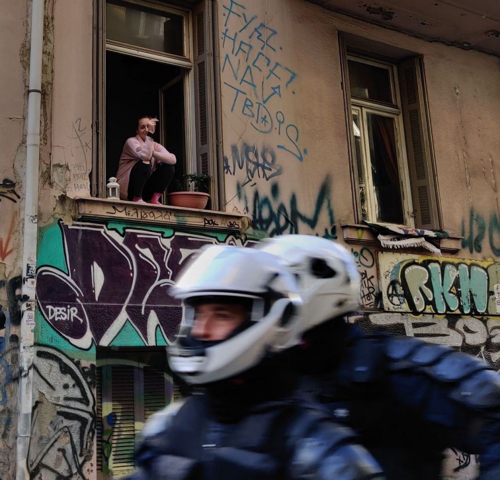 Λίγο αργότερα οι αστυνομικοί προσήγαγαν ένα ακόμα άτομο. Κλιμάκιο της ΕΛΑΣ εντόπισε τον νεαρό να κινείται στην πλατεία Αριστοτέλους και κατά τον έλεγχο εντοπίστηκε να έχει μαζί του ένα πανό. Οι αστυνομικοί προχώρησαν σε ελέγχους ατόμων περιμετρικά των παραπάνω σημείων, συνιστώντας στους διερχόμενους να επιστρέψουν στο σπίτι τους.