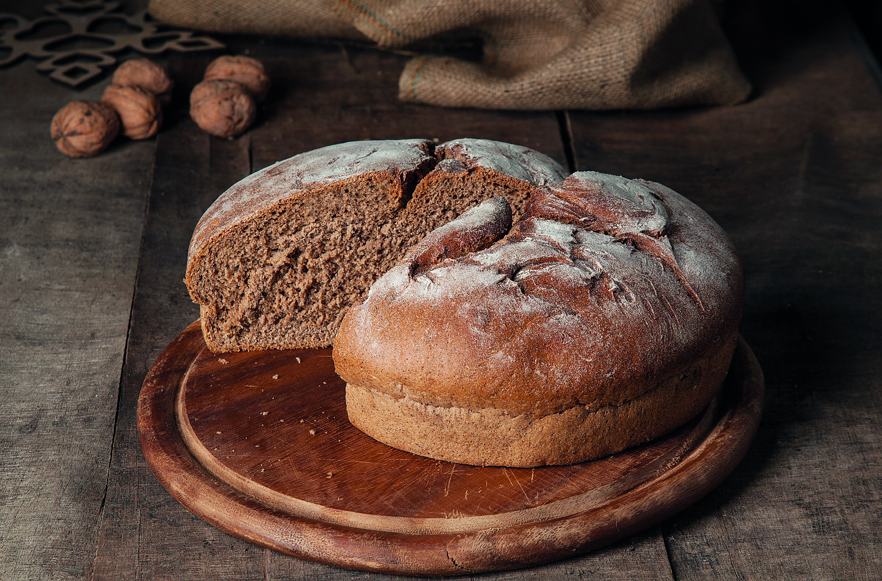 Πλάθουμε το κάθε κομμάτι σε καρβέλι και πασπαλίζουμε με το αλεύρι για όλες τις χρήσεις. Λαδώνουμε δύο χαμηλά ταψάκια διαμέτρου 20 εκ. το καθένα (μπορούμε να χρησιμοποιήσουμε και τα αλουμινένια μιας χρήσης). Βάζουμε τις ζύμες στα ταψιά με τη λεία επιφάνεια προς τα κάτω και τις «ραφές» (το σημείο δηλαδή που σουρώνει) προς τα πάνω για να δημιουργηθούν τα σκασίματα κατά το ψήσιμο. Τα σκεπάζουμε με μια βαμβακερή πετσέτα και τα αφήνουμε να φουσκώσουν σε θερμοκρασία δωματίου για 35 – 40 λεπτά. Προθερμαίνουμε τον φούρνο στους 190°C – 200°C και ψήνουμε τα ψωμιά 45 – 50 λεπτά. Οταν είναι έτοιμα, τα ξεφουρνίζουμε, τα βγάζουμε από τα ταψιά και τα αφήνουμε να κρυώσουν πριν τα κόψουμε.