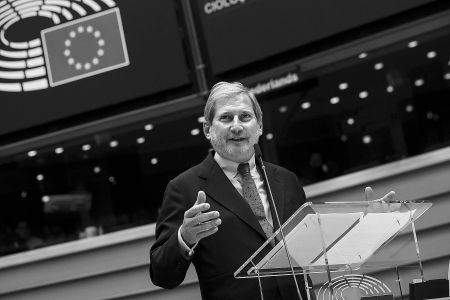 Ο αυστριακός επίτροπος στην προηγούμενη θητεία του στην Κομισιόν επί προεδρίας Ζαν Κλοντ Γιούνκερ ως υπεύθυνος για τη διεύρυνση, έγινε ιδιαίτερα γνωστός στην Ελλάδα από τον ενεργό ρόλο του στη Συμφωνία των Πρεσπών. Σήμερα δηλώνει «ελπίζω ότι η συμφωνία των Πρεσπών θα εμπνεύσει επίσης τη Βουλγαρία να αποδεχθεί την ταυτότητα της Βόρειας Μακεδονίας» και επί τη ευκαιρία στέλνει ένα γενικότερο μήνυμα όχι μόνο για τη Βαλκανική αλλά και προς Ανατολάς δηλώνοντας ότι «καμία χώρα που διατηρεί ανεπίλυτες διαφορές με τους γείτονές της δεν θα γίνεται δεκτή στην ΕΕ».