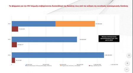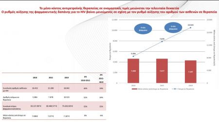 Μάλιστα, σύμφωνα με τα ευρήματα της μελέτης, ο ρυθμός αύξησης της φαρμακευτικής δαπάνης για τη διαχείριση του HIV υπολείπεται σε σχέση με τον ρυθμό αύξησης των ασθενών σε θεραπεία, σε αντίθεση με άλλα χρόνια νοσήματα, για τα οποία υπάρχουν δημοσιευμένα δεδομένα στην αντίστοιχη περίοδο.