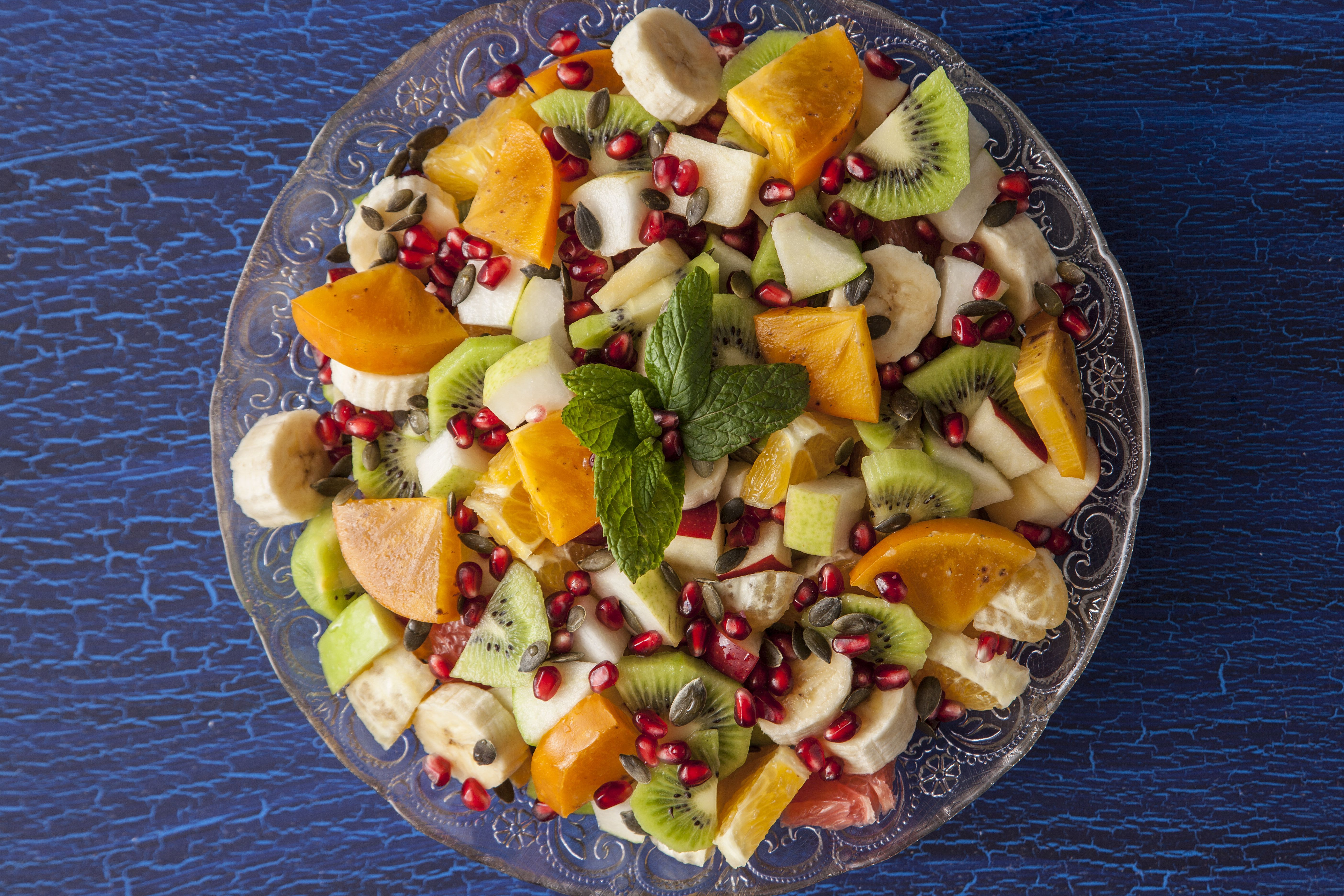 Σε ένα μπολ ανακατεύουμε τα φρούτα με το χυμό λεμόνι (για να μη μαυρίσουν). Τα περιχύνουμε με το σιρόπι μαστίχας που έχει κρυώσει και προσθέτουμε τον κολοκυθόσπορο. Βάζουμε τη φρουτοσαλάτα στο ψυγείο μέχρι να τη σερβίρουμε.