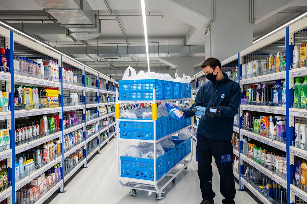 Αυτό είναι το ΑΒ Ηome Shop Center, ένα κέντρο διανομής της ΑΒ Βασιλόπουλος, αποκλειστικά για πελάτες του ΑΒ Εshop και τις ηλεκτρονικές παραγγελίες για την Αττική. Πρόκειται για μια επένδυση που έχει ήδη ξεπεράσει τα 10 εκατ. ευρώ, ενώ δημιούργησε 260 νέες θέσεις εργασίας, που σύντομα θα γίνουν 400. Ξεκίνησε τη λειτουργία του τον Αύγουστο του 2020, για να εξυπηρετήσει τις διαρκώς αυξανόμενες ανάγκες των αγορών από απόσταση – των ηλεκτρονικών αγορών. Και αν νομίζετε ότι δεν σας αφορά… Το ΑΒ Ηome Shop Center είναι ο “εγκέφαλος”, αλλά και το “σώμα” που μέσα από το συνολικά αναβαθμισμένο ΑΒ Εshop μπορείς σήμερα να έχεις: