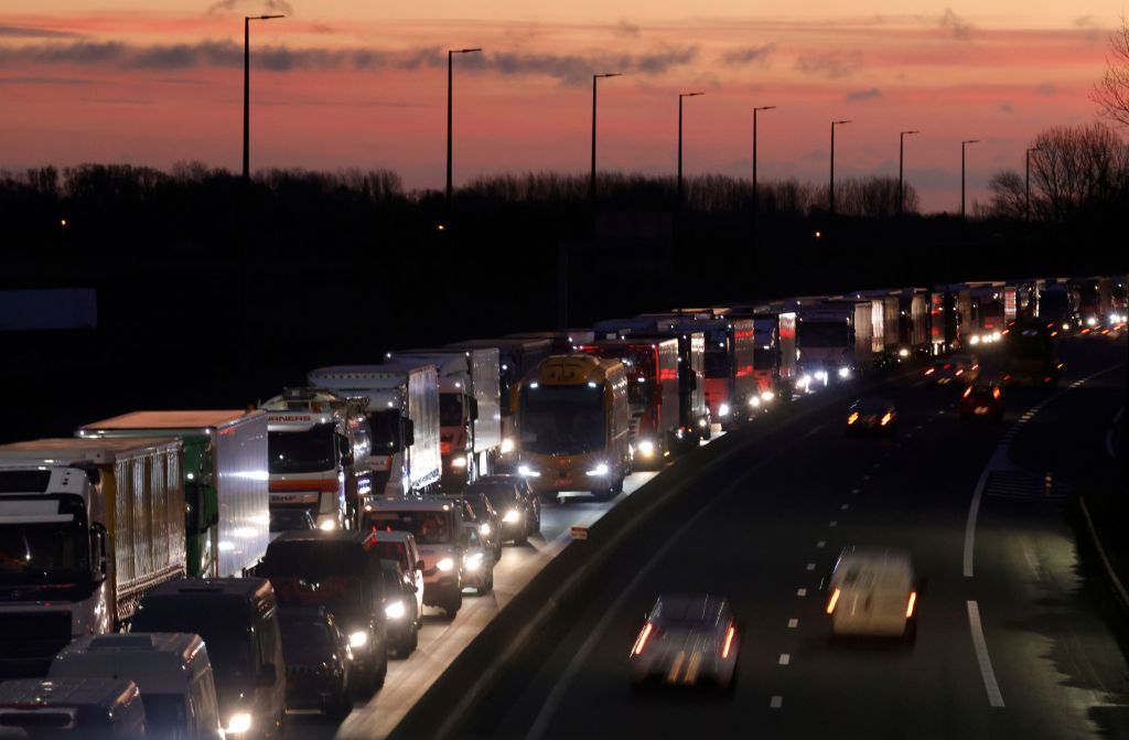 Εκατοντάδες φορτηγά σχηματίζουν ατελείωτη ουρά στη νότια Αγγλία, μετά το κλείσιμο των συνόρων. Πολλοί οδηγοί έχουν αποκλειστεί στο Ντόβερ και στους δρόμους που οδηγούν μέχρι εκεί για μέρες και τρώνε ό,τι αποθέματα είχαν μαζί τους.
