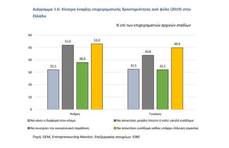 Μάλιστα, η αύξηση αυτή προέρχεται σχεδόν αποκλειστικά από την άνοδο της γυναικείας απασχόλησης, η οποία όμως φαίνεται να προκύπτει κυρίως από κίνητρα βιοπορισμού. Παράλληλα, περιορίζεται στο 2% του πληθυσμού (130 χιλ. άτομα), το ποσοστό των ατόμων που διέκοψε την επιχειρηματική του δραστηριότητα (έναντι 2,8% το 2017).