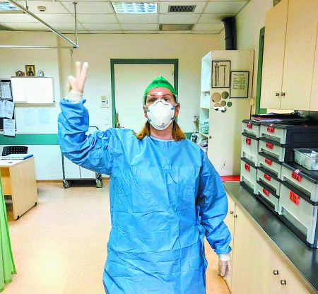 Από την πρώτη στιγμή, ως πνευμονολόγος σε νοσοκομείο αναφοράς, κλήθηκε να περιθάλψει ασθενείς φορώντας ολόσωμες στολές, γάντια και μάσκες. «Δύσκολες και ιδιαίτερες συνθήκες εργασίας τόσο για εμάς, αλλά το ίδιο δύσκολες και για τους ασθενείς που στα μάτια τους διαφαίνονται καθαρά το άγχος και ο φόβος, συναισθήματα που κυριαρχούν όταν βρίσκεσαι μπροστά σε κάτι καινούργιο και συνάμα τόσο επικίνδυνο».