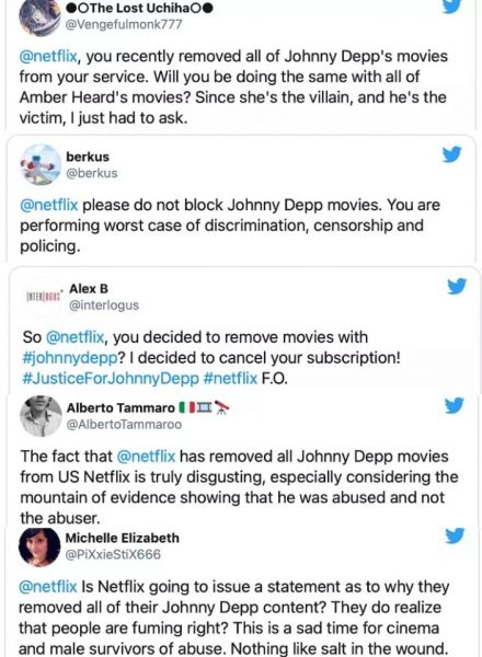 Σύμφωνα με το watchandchill.gr, οι θαυμαστές του ηθοποιού αλλά και πολλοί συνδρομητές αντέδρασαν αρνητικά, καθώς θεωρούν ότι το δίκτυο προχώρησε σε αυτή τη κίνηση εξαιτίας της απόφασης του δικαστηρίου ότι τελικά ο Depp χτυπούσε την πρώην σύζυγό του, κάτι το οποίο δεν πιστεύουν.