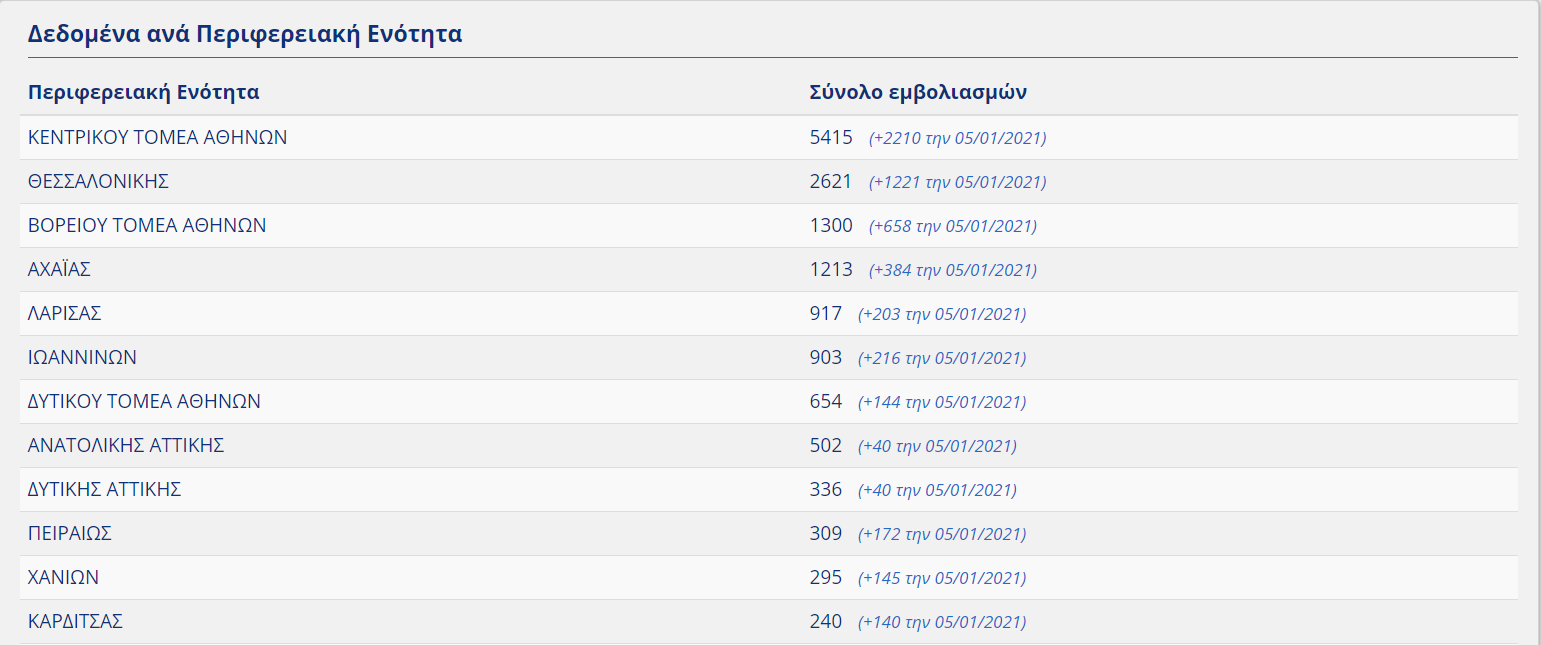 Παράλληλα, θα μπορούν να βλέπουν τα δεδομένα ανά Περιφερειακή Ενότητα. Δηλαδή πόσοι άνθρωποι έχουν εμβολιαστεί ανά περιοχή της χώρας μας.