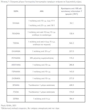 Συγκεκριμένα, ο μέγιστος επιτρεπόμενος αριθμός ατόμων, από 1 άτομο ανά 10 τ.μ. που ίσχυε μέχρι την Κυριακή 17/1, από τη Δευτέρα 18/1 γίνεται 1 άτομο ανά 25 τ.μ.. Σε καμία χώρα της Ευρώπης από όσες έχουμε διαθέσιμα στοιχεία δεν υπάρχει τόσο αυστηρός περιορισμός πρόσβασης στα καταστήματα τροφίμων, ενώ έχουν πολλαπλάσιο επιδημιολογικό φορτίο σε σχέση με την Ελλάδα.