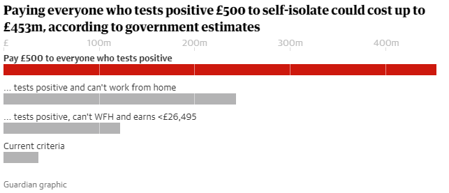 Προς το παρόν, όσοι εργαζόμενοι αναγκάζονται να μπουν σε καραντίνα 10 ημερών, καθώς και οι στενές επαφές τους, μπορούν να πάρουν το επίδομα των 500 λίρων. Επίσης, οι χαμηλόμισθοι που δεν μπορούν να δουλέψουν από το σπίτι λαμβάνουν άπαξ επίδομα 500 λιρών και μια σειρά άλλων επιδομάτων.