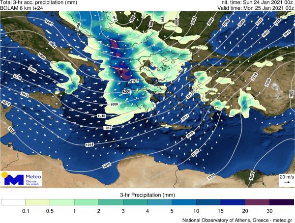 Καιρός: Αρχικά νεφώσεις με ισχυρές βροχές και καταιγίδες και χιονοπτώσεις στα ορεινά, πυκνές στα ορεινά της Ηπείρου. Εξασθένηση από τις πρωινές ώρες. Τη νύχτα στα βορειοδυτικά τα φαινόμενα θα ενταθούν εκ νέου.
