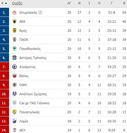 Ο Ολυμπιακός αύξησε κατά δύο τους βαθμούς διαφοράς από τη 2η θέση, μετά τη νίκη του επί του Απόλλωνα Σμύρνης.