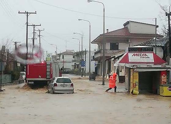 Δρόμοι έχουν μετατραπεί σε ποτάμια με αποτέλεσμα η Πυροσβεστική αλλά και οι υπηρεσίες του δήμου να επεμβαίνουν για αντλήσεις των υδάτων.