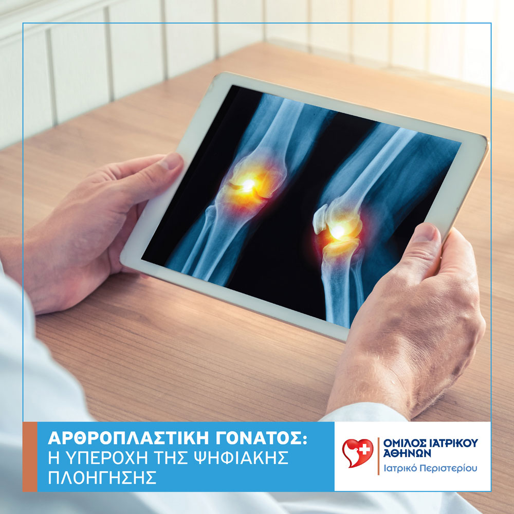 Η καθημερινή ενημέρωση για νέες τεχνολογίες και υλικά, σε συνδυασμό με τις συνεχείς επενδύσεις του Ομίλου Ιατρικού Αθηνών σε βιοϊατρικό εξοπλισμό, μας επιτρέπει να διαθέτουμε στα νοσοκομεία του Ομίλου, την τελευταία λέξη της σύγχρονης αντιμετώπισης για τις παθήσεις των αρθρώσεων. Παράλληλα, και μέσα από τη συνεργασία της Διεπιστημονικής Ομάδας είμαστε σε θέση να προσφέρουμε την πλέον εξατομικευμένη, ακίνδυνη και ελάχιστα επεμβατική λύση για κάθε περίπτωση, όσο σύμπλοκη και αν είναι.