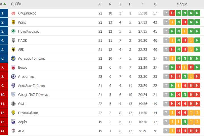 Το πρόγραμμα και τα αποτελέσματα της 22ης αγωνιστικής