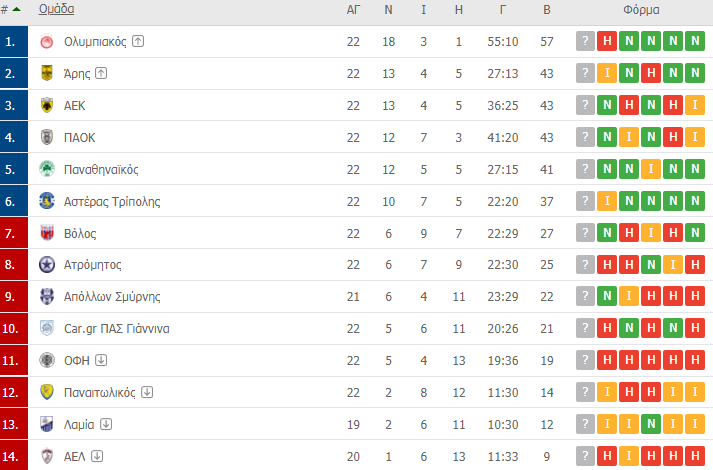 Το πρόγραμμα και τα αποτελέσματα της 22ης αγωνιστικής