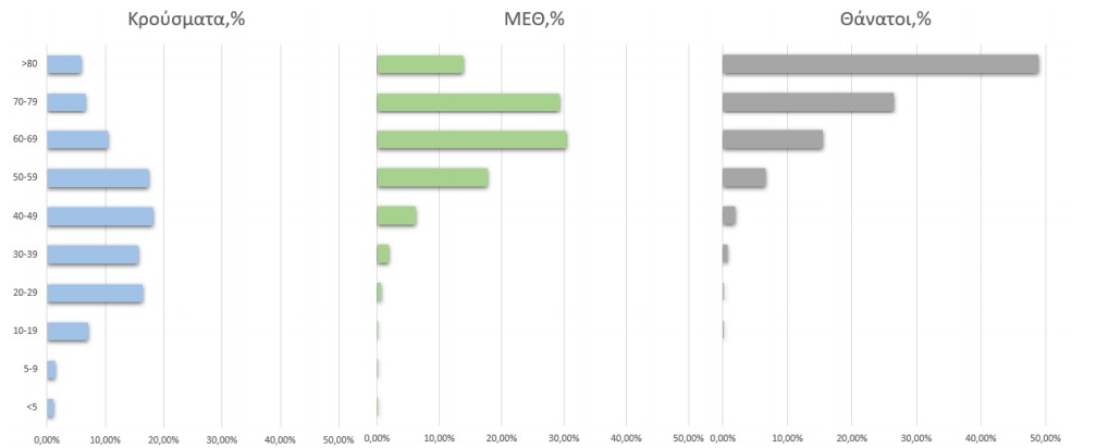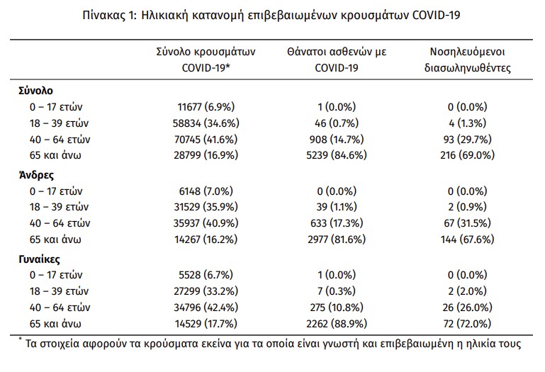 Οι νέοι θάνατοι ασθενών με COVID-19 είναι 13, ενώ από την έναρξη της επιδημίας έχουν καταγραφεί συνολικά 6194 θάνατοι. Το 95.6% είχε υποκείμενο νόσημα ή/και ηλικία 70 ετών και άνω.