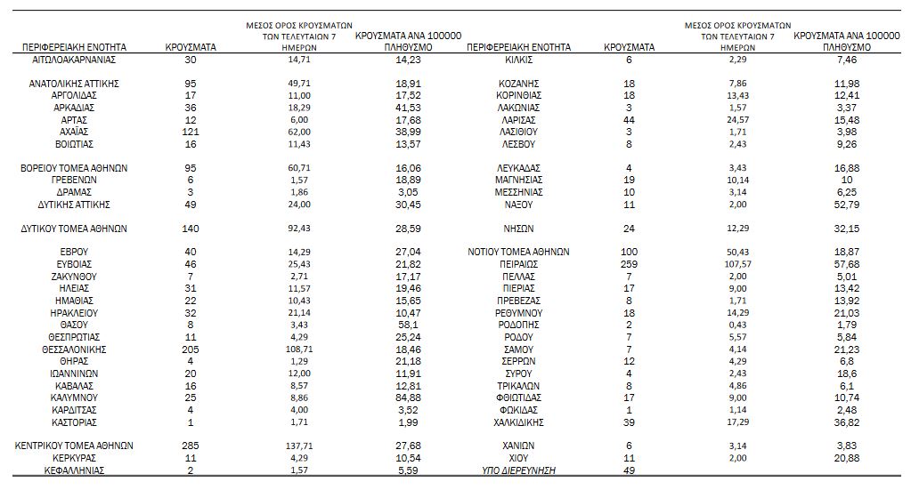 Αναλυτικά τα κρούσματα σε όλη τη χώρα