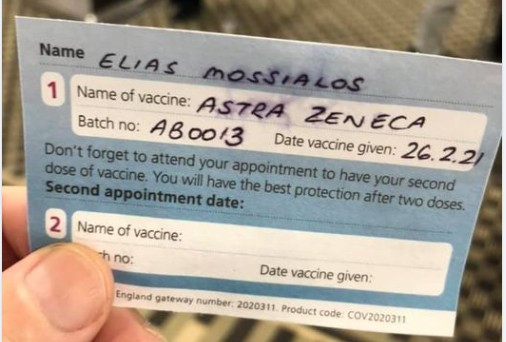 Την πρώτη δόση του εμβολίου της AstraZeneca έκανε σήμερα ο καθηγητής Πολιτικής της Υγείας της Σχολής Οικονομικών και Πολιτικών Επιστημών του Λονδίνου (LSE), Ηλίας Μόσιαλος.