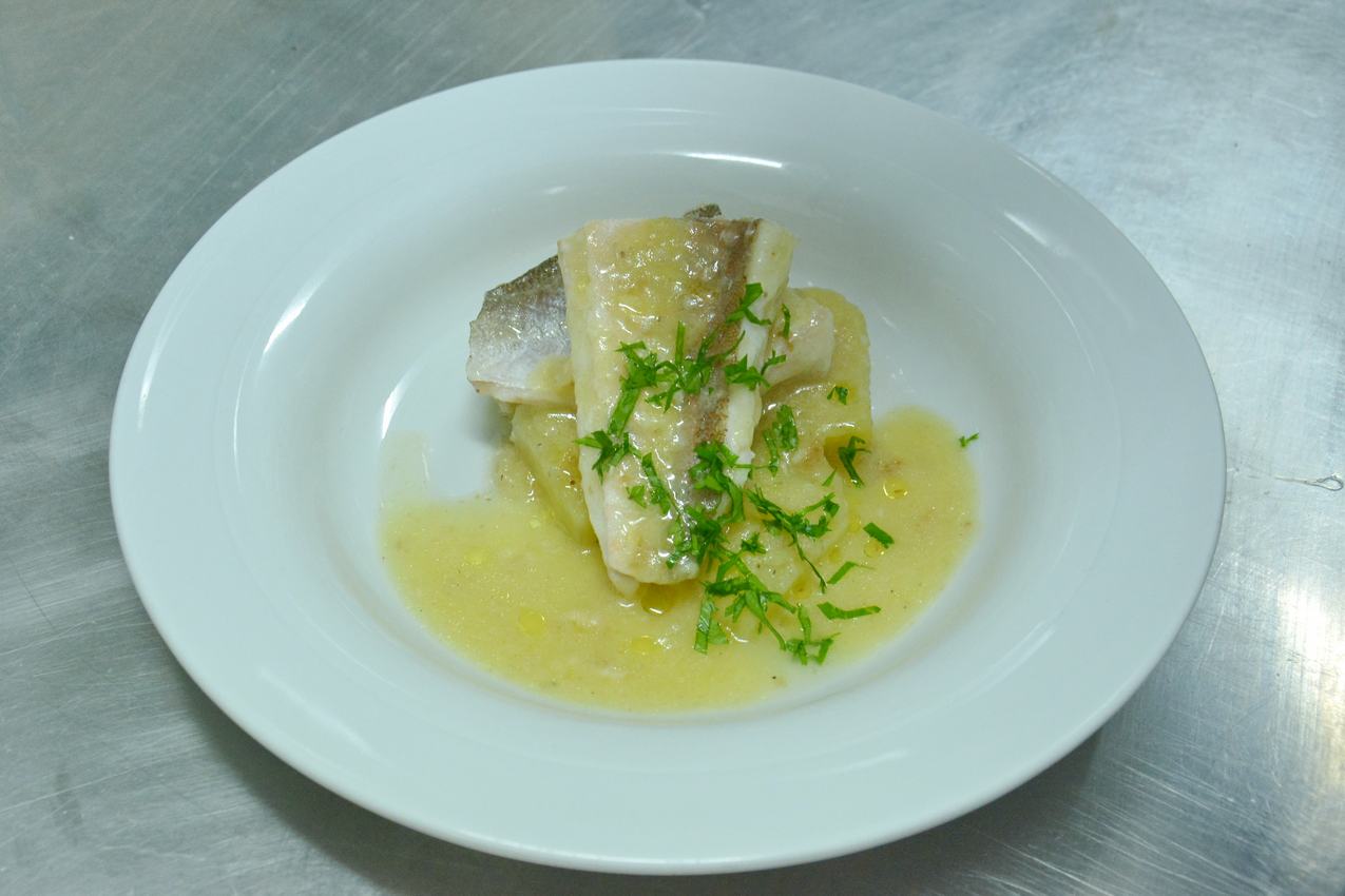 Τα ψάρια είναι έτοιμα μόλις αλλάξουν χρώμα. Προσθέτουμε τις πατάτες για ένα τελευταίο ζέσταμα, τον μισό χυμό λεμονιού και το ελαιόλαδο και ανακινούμε το σκεύος όπως όταν κάνουμε αβγολέμονο για να ομογενοποιηθεί η σάλτσα. Δοκιμάζουμε και διορθώνουμε, αν χρειαστεί, σε αλάτι, πιπέρι και οξύτητα.
