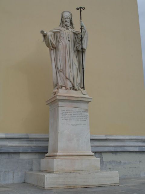 Το 1871, το πρώτο ιωβηλαίο της Ελληνικής Επανάστασης ήταν μια «πολιτική γιορτή» που οργανώθηκε με βάση τη μοναρχική εορταστική παράδοση, η οποία είχε δημιουργηθεί στις αυλές της Δυτικής Ευρώπης σταδιακά από τον Μεσαίωνα και έφτασε στην Ελλάδα μέσω των δυναστικών οίκων, αρχικά των Βίτελσμπαχ και εν συνεχεία των Γλύξμπουργκ. Κεντρική τελετή για την πεντηκονταετηρίδα της Επανάστασης ήταν η μετακομιδή των λειψάνων του Πατριάρχη Γρηγορίου Ε’ από την Οδησσό, όπου είχε ταφεί μετά τη θανάτωσή του από τις οθωμανικές αρχές ως αντίποινα για την ελληνική εξέγερση. Ο Γρηγόριος ήταν η κεντρική ιστορική προσωπικότητα των μνημονικών τελετών, δεδομένου ότι εκτός από τη μετακομιδή των οστών του κατασκευαζόταν ανδριάντας του στα Προπύλαια του Πανεπιστημίου Αθηνών, ο οποίος προγραμματιζόταν να εγκαινιαστεί στην ίδια συγκυρία. Ο ανδριάντας δεν ήταν έτοιμος ωστόσο και έτσι εγκαινιάστηκε την επόμενη χρονιά. Το 1871 μπροστά από το Πανεπιστήμιο έγιναν τα αποκαλυπτήρια του ανδριάντα του Ρήγα Φεραίου. Και τα δύο γλυπτά είχαν χρηματοδοτηθεί από τον πλούσιο Eλληνα της Διασποράς Γεώργιο Αβέρωφ.