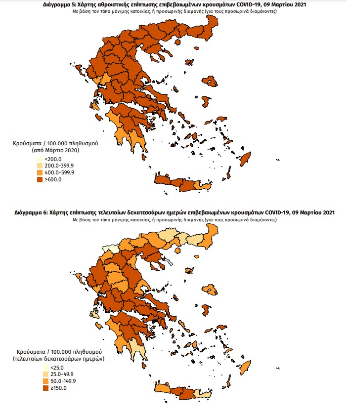 Με βάση τα επιβεβαιωμένα κρούσματα των τελευταίων 7 ημερών, 74 θεωρούνται σχετιζόμενα με ταξίδι από το εξωτερικό και 2.769 είναι σχετιζόμενα με ήδη γνωστό κρούσμα.