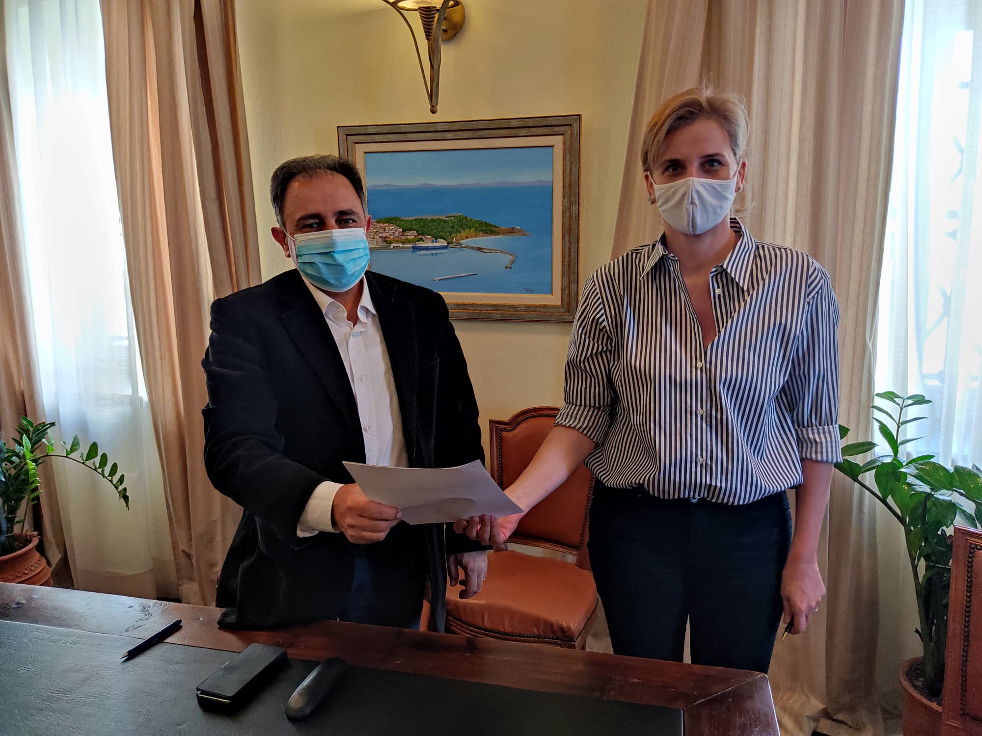 Από αριστερά προς τα δεξιά) Ο Δήμαρχος Μυτιλήνης, Στρατής Κύτελης και η Αντιπρόεδρος του Δ.Σ. των Παιδικών Χωριών SOS, Αλεξάνδρα Κοντέλλη.