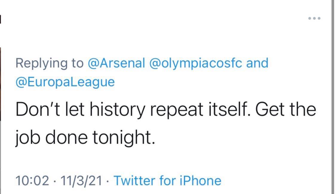 Βέβαια, πολλοί είναι και οι απαισιόδοξοι οπαδοί της Άρσεναλ και βλέπουν νέο αποκλεισμό και μάλιστα ταπεινωτικό όπως τονίζουν από τον Ολυμπιακό, έναν χρόνο μετά το έπος του Emirates.