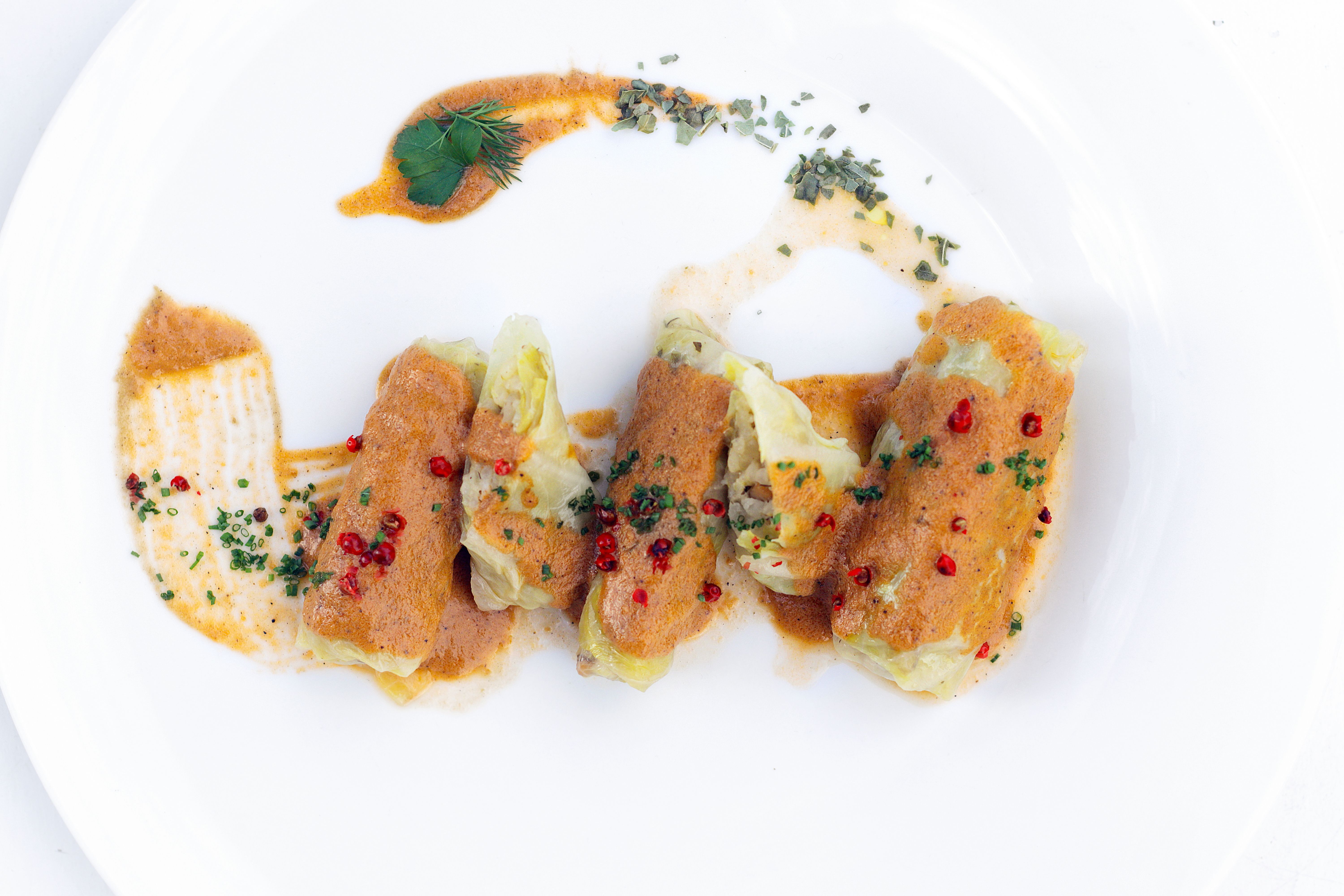 Στη συνέχεια ζεματίζουμε το λάχανο ως εξής: Ρίχνουμε σε μια μεγάλη κατσαρόλα άφθονο νερό και το βάζουμε να βράσει. Στο μεταξύ αφαιρούμε το κοτσάνι του λάχανου (έχουμε επιλέξει μαλακό λάχανο, ωστόσο αν έχει κάποια σκληρά εξωτερικά φύλλα τα αφαιρούμε), κόβοντάς το με ένα αιχμηρό μαχαίρι το οποίο κινούμε κυκλικά ώσπου να αφαιρεθεί όλο το κοτσάνι μέχρι μέσα. Οταν αρχίσει να κοχλάζει το νερό της κατσαρόλας, ρίχνουμε αλάτι και ολόκληρο το λάχανο με την τρύπα προς τα κάτω. Το νερό θα σταματήσει να κοχλάζει για μερικά λεπτά γιατί θα πέσει η θερμοκρασία του. Θα αρχίσει ξανά να κοχλάζει έντονα και από τότε βράζουμε για 10-15 λεπτά, ώσπου να μαλακώσουν όλα τα φύλλα μέχρι μέσα. Βγάζουμε το λάχανο από το νερό και το αφήνουμε να κρυώσει ώστε να μπορούμε να το πιάνουμε χωρίς να καιγόμαστε. Ξεχωρίζουμε τα φύλλα ένα-ένα και τα αφήνουμε σε ένα σουρωτήρι να στραγγίξουν. Στρώνουμε στον πάτο μιας κατσαρόλας τα πιο χοντρά φύλλα, αυτά που δεν είναι κατάλληλα για τύλιγμα, μαζί με το πράσινο μέρος από τα φρέσκα κρεμμυδάκια που κρατήσαμε.