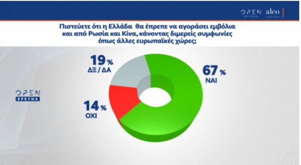 Το 67% των πολιτών πιστεύουν ότι η χώρα μας θα έπρεπε να αγοράσει εμβόλια και από την Ρωσία, και από την Κίνα, κάνοντας διμερείς συμφωνίες, όπως έκαναν άλλες ευρωπαϊκές χώρες.