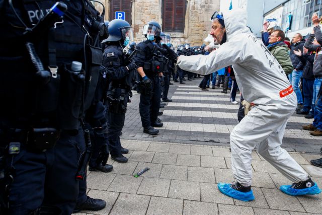 Συγκρούσεις ξέσπασαν σήμερα, Σάββατο, μεταξύ αστυνομικών και διαδηλωτών που διαμαρτύρονταν για τα μέτρα κατά της πανδημίας στο Κάσελ, στην κεντρική Γερμανία, σε μια από τις μεγαλύτερες συγκεντρώσεις που έχουν οργανωθεί από τις αρχές του έτους στη χώρα.