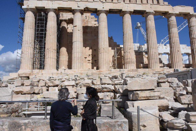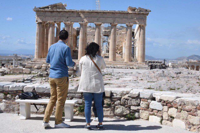 Ήταν σαν να το περίμεναν από καιρό. Αυτή η ανυπομονησία ήταν διάχυτη στην οδό Διον. Αρεοπαγίτη με τους πρώτους τουρίστες να περιμένουν να ανοίξουν οι πύλες του μνημείου- φάρος της Αρχαιότητας για να την επισκεφθούν. Φορώντας τις μάσκες τους, κρατώντας σχολαστικά τις αποστάσεις οι επισκέπτες της πρώτης ημέρας που άνοιξε η Ακρόπολη έβγαλαν φωτογραφίες και στάθηκαν με δέος μπροστά στο μνημείο. Να σημειώσω ότι στους αρχαιολογικούς χώρους επιτρέπεται η παρουσία έως 3 ατόμων με χρήση μάσκας, χωρίς αυτοκίνητο ή μοτοσυκλέτα. Για την παρουσία τους εκεί οι πολίτες θα πρέπει να έχουν αποστείλει με sms στο 13033 τον κωδικό «6», είτε να έχουν μαζί τους βεβαίωση τύπου Β όπου θα έχει επιλεγεί ο κωδικός «6».