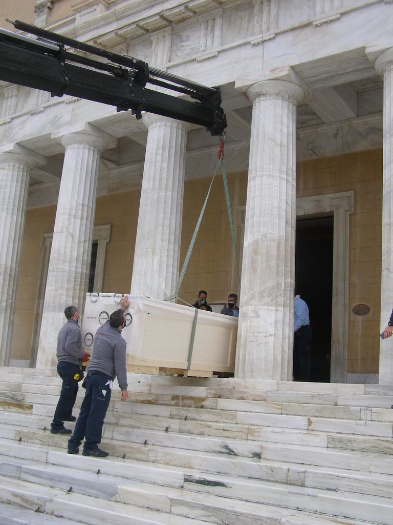 Ο γερανός εμφανίστηκε και πάλι στη Βουλή, αυτή τη φορά για εθνικό λόγο. Μετέφερε μια σπάνια ταπισερί του 18ου αιώνα που αναπαριστά τη Σχολή των Αθηνών του Ραφαήλ. Ένα έργο ωδή στην ελληνική σκέψη που έθεσε τα θεμέλια της Δημοκρατίας. Παραχώρηση από την Γαλλική Εθνοσυνέλευση που τιμά έτσι την Ελληνική Επανάσταση. Ήρθε με ειδική συσκευασία, με συνθήκες υψηλής ασφάλειας γιατί για τους Γάλλους πρόκειται για εθνικό κειμήλιο ανυπέρβλητης αξίας. Θα παραμείνει στη Βουλή των Ελλήνων για μερικούς μήνες, αλλά, όπως μαθαίνω άρχισαν ήδη οι διαβουλεύσεις με την γαλλική κυβέρνηση ώστε να παραμείνει για όλο το 2021.