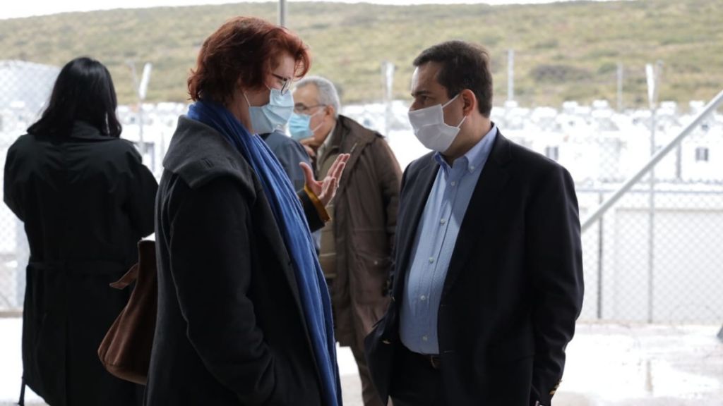 Κοινή επίσκεψη στη νέα κλειστή ελεγχόμενη δομή Σάμου στη θέση Ζερβού, προκειμένου να διαπιστώσουν ιδίοις όμμασι την πρόοδο των εργασιών, πραγματοποίησαν ο Υπουργός Μετανάστευσης και Ασύλου, κ. Νότης Μηταράκης και η Αναπληρώτρια Γενική Διευθύντρια της DG HOME, κ. Beate Gminder.