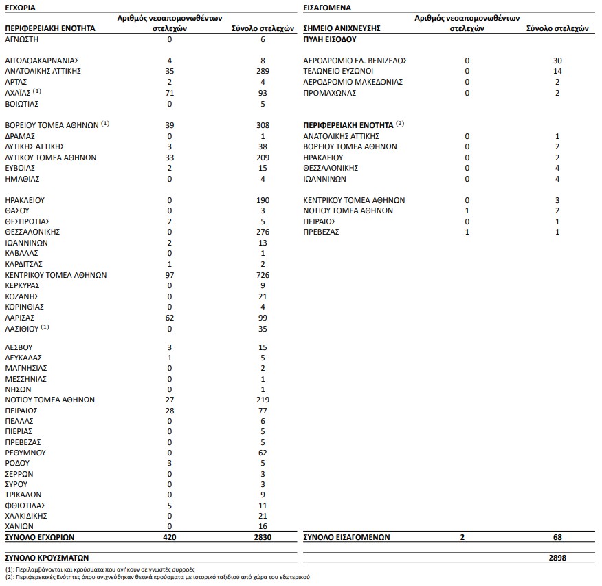 Συνολικά έχουν ταυτοποιηθεί 2.898 θετικά για την παρουσία μετάλλαξης Β.1.1.7/UK lineage (Variant VOC_202012) και 56 θετικά για την παρουσία μετάλλαξης B.1.351/South Africa (Variant 501.V2) από την έναρξη λειτουργίας του Εθνικού Δικτύου Γονιδιωματικής Επιτήρησης για τις μεταλλάξεις του SARS-CoV-2 έως σήμερα.
