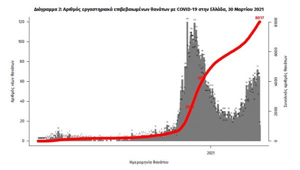 Οι νέοι θάνατοι ασθενών με COVID-19 είναι 72, ενώ από την έναρξη της επιδημίας έχουν καταγραφεί συνολικά 8.017 θάνατοι. Το 95.6% είχε υποκείμενο νόσημα ή/και ηλικία 70 ετών και άνω.