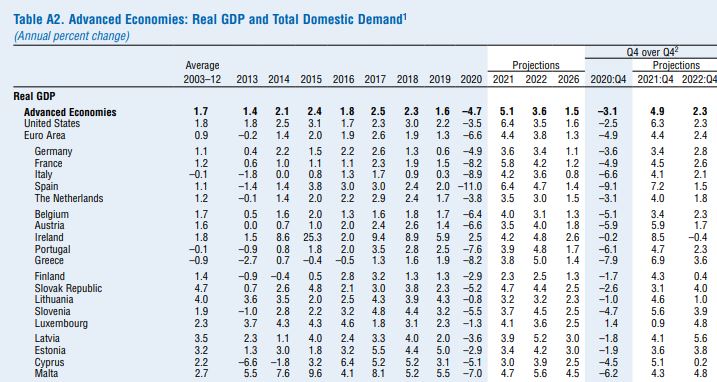 Το 2022 θα είναι σαφώς καλύτερο, με ετήσια ανάπτυξη 5%, καλύπτοντας τις απώλειες του 2020 (-8,2%) αλλά σε βάθος χρόνου, το ΔΝΤ επιμένει στην πάγια εκτίμησή του ότι ο ρυθμός ανάπτυξης θα κυμαίνεται στην περιοχή του του 1% (προβλέπει 1,4% για το 2026).