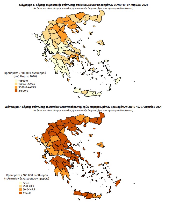 Με βάση τα επιβεβαιωμένα κρούσματα των τελευταίων 7 ημερών, 94 θεωρούνται σχετιζόμενα με ταξίδι από το εξωτερικό και 2.711 είναι σχετιζόμενα με ήδη γνωστό κρούσμα.