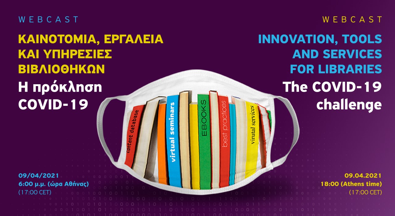 Σκοπός του webcast είναι να παρουσιαστούν οι καινοτομίες, οι τεχνολογίες και οι πρωτοβουλίες που αποδείχτηκαν αποτελεσματικές κατά τη διάρκεια της πανδημίας COVID-19. Μέσα από τις παρουσιάσεις θα αναδειχτούν οι πρακτικές και οι υπηρεσίες αυτές που μπορούν να ακολουθηθούν και από άλλες βιβλιοθήκες, για την κάλυψη των δικών τους αναγκών κατά τη διάρκεια των περιοριστικών μέτρων, αλλά και αυτές που θα μπορούσαν να παραμείνουν σε εφαρμογή στην μετά την COVID-19 νέα κανονικότητα.