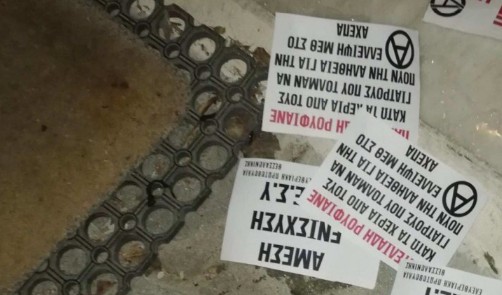 Τρικάκια και μπογιές πέταξαν αντιεξουσιαστές έξω από το σπίτι του διοικητή του ΑΧΕΠΑ, στην Καλαμαριά, Θεσσαλονίκης.