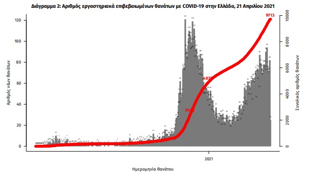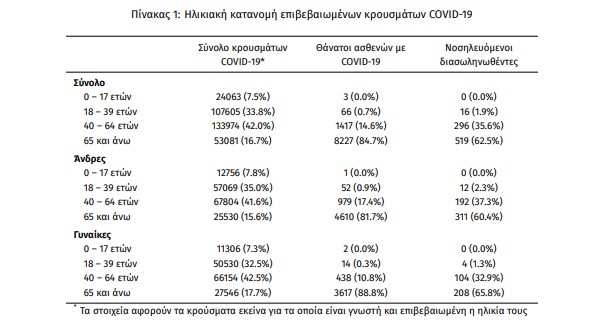 Οι νέοι θάνατοι ασθενών με COVID-19 είναι 86, ενώ από την έναρξη της επιδημίας έχουν καταγραφεί συνολικά 9.713 θάνατοι. Το 95.5% είχε υποκείμενο νόσημα ή/και ηλικία 70 ετών και άνω.