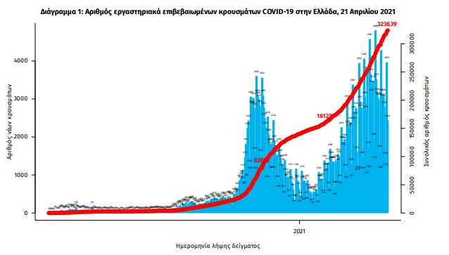 Ο συνολικός αριθμός των κρουσμάτων ανέρχεται σε 323.639 (ημερήσια μεταβολή +0.9%), εκ των οποίων 51.3% άνδρες. Με βάση τα επιβεβαιωμένα κρούσματα των τελευταίων 7 ημερών, 61 θεωρούνται σχετιζόμενα με ταξίδι από το εξωτερικό και 2.833 είναι σχετιζόμενα με ήδη γνωστό κρούσμα.