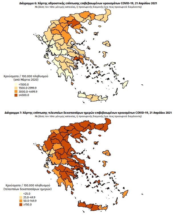 Συμπεριλαμβάνονται τόσο κρούσματα με ιστορικό ταξιδίου (“εισαγόμενα”) όσο και κρούσματα με πιθανή εγχώρια μετάδοση.