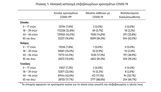 Οι νέοι θάνατοι ασθενών με COVID-19 είναι92, ενώ από την έναρξη της επιδημίας έχουν καταγραφεί συνολικά10.179 θάνατοι. Το 95.5% είχε υποκείμενο νόσημα ή/και ηλικία 70 ετών και άνω.