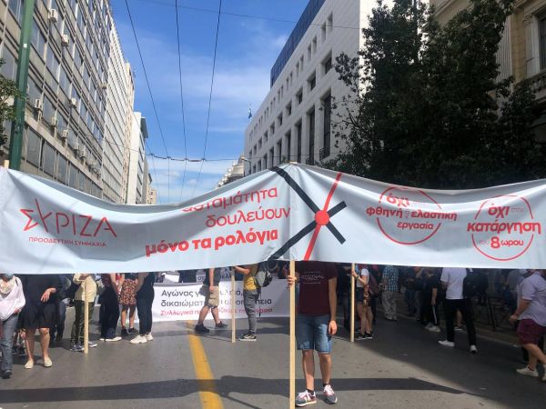 «Μετά από μία δεκαετία συνεχών αντεργατικών μέτρων από τις κυβερνήσεις της ΝΔ, του ΠΑΣΟΚ, του ΣΥΡΙΖΑ, έρχεται η σημερινή κυβέρνηση να φέρει συντριπτικό πλήγμα σε όλα τα δικαιώματα των εργαζομένων. Είμαστε όλοι σήμερα εδώ ενωμένοι, γιατί αγωνιζόμαστε να καταργηθούν όλοι οι αντεργατικοί νόμοι της ΝΔ, του ΠΑΣΟΚ και του ΣΥΡΙΖΑ. Γιατί αρνούμαστε την 10ωρη δουλειά. Γιατί δεν πρέπει να κατατεθεί αυτό το νομοσχέδιο – έκτρωμα του Χατζηδάκη. Γιατί υπερασπιζόμαστε τη συνδικαλιστική δράση και ελευθερία όλων των εργαζομένων».