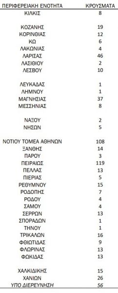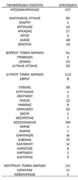 Η κατανομή των κρουσμάτων κοροναϊού σε όλη τη χώρα έχει ως εξής: