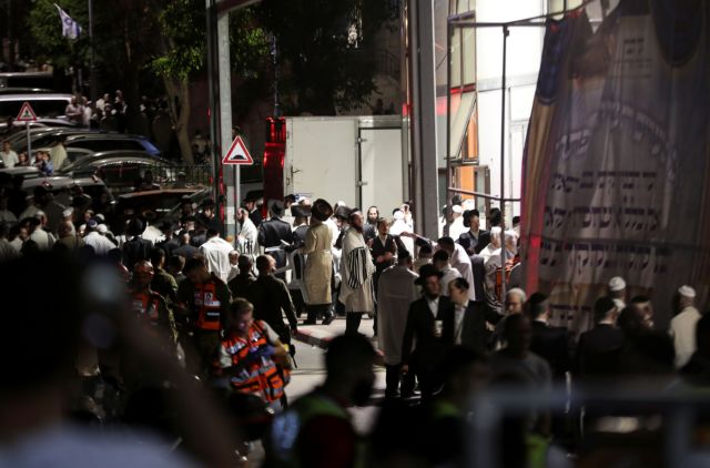 Εικόνες από κάμερες ασφαλείας που προβλήθηκαν στο Channel 12 έδειχναν μια γεμάτη από πιστούς εξέδρα να καταρρέει και οι άνθρωποι να πέφτουν ο ένας πάνω στον άλλο.