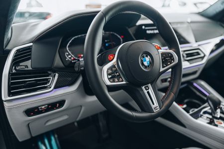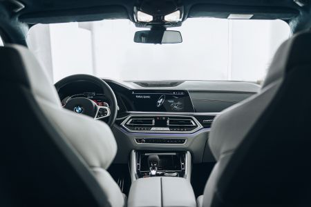 Στο εντυπωσιακό εσωτερικό της X5 M Competition First Edition ξεχωρίζουν ανάμεσα στα άλλα η πλήρως δερμάτινη επένδυση BMW Individual Merino σε αποκλειστική διχρωμία Silverstone/Midnight Blue η οποία εναρμονίζεται με τους διαθέσιμους χρωματισμούς εσωτερικού της σειράς BMW Individual, τα ένθετα από Black Alcantara στα μαξιλάρια των καθισμάτων, οι ραφές σε Sakhir Orange οι οποίες τονίζουν τη σπορ σχεδίαση των καθισμάτων πολλαπλών λειτουργιών M αλλά και οι ραφές στις επενδύσεις των θυρών και στο ταμπλό οι οποίες δημιουργούν αντίστοιχα ελκυστικές αντιθέσεις.