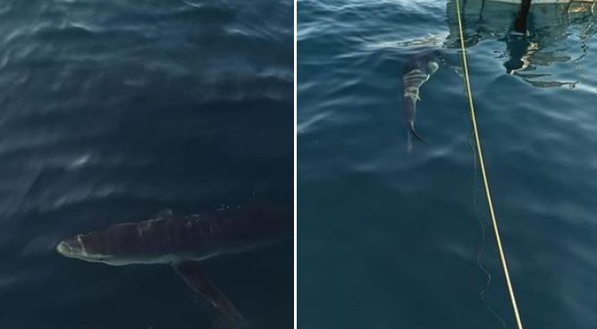 Ο καρχαρίας, δεν φαινόταν μάλιστα να ενοχλείται από την παρουσία του σκάφους. Σύμφωνα, επίσης, με αναρτήσεις στη σελίδα «Fishing in Greece» στο Facebook, πρόκειται και εδώ για γαλάζιο καρχαρία (Prionace glauca).