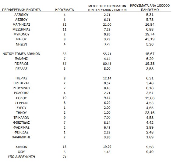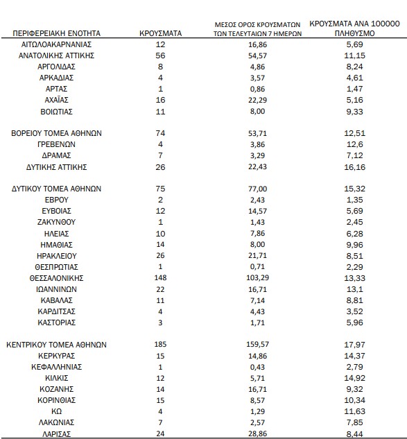 Τέλος Δυτική Αττική και νησιά του Αργοσαρωνικού «δίνουν» 26 και 4 κρούσματα αντίστοιχα.