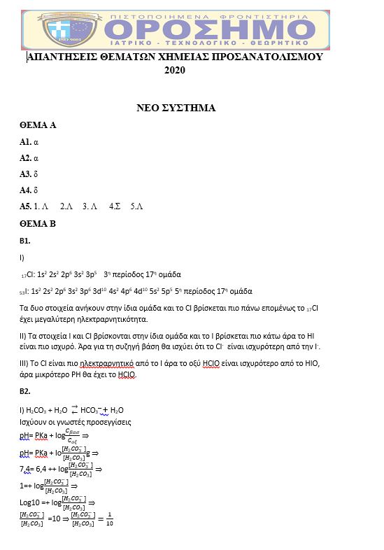 Παρακάτω μπορείτε να δείτε το περσινό θέμα (2020) για τη Χημεία Προσανατολισμού με το νέο σύστημα.